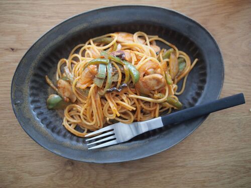 お休みの土曜日ランチ。手軽にできるパスタです。パスタって二人分作るの難しい!具の量が悩ましい。 息子も食べれるようにナポリタンにしました。大好きだよね、ケチャップ。ポテトにつけても、ケチャップだけ舐めるよ。わかるけど…アカンですね。 レシピは…